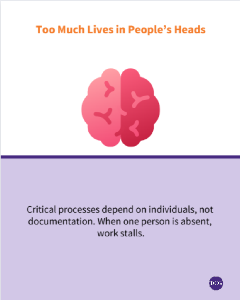 When critical processes depend on individuals instead of documentation, growth becomes fragile.